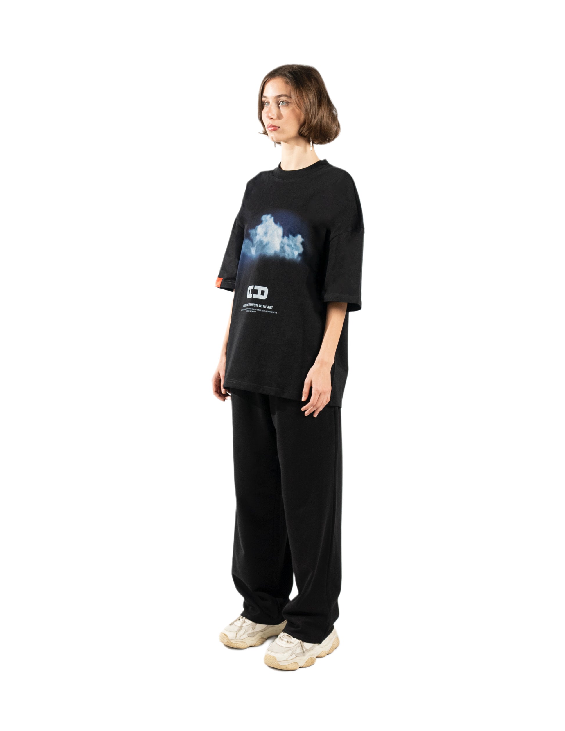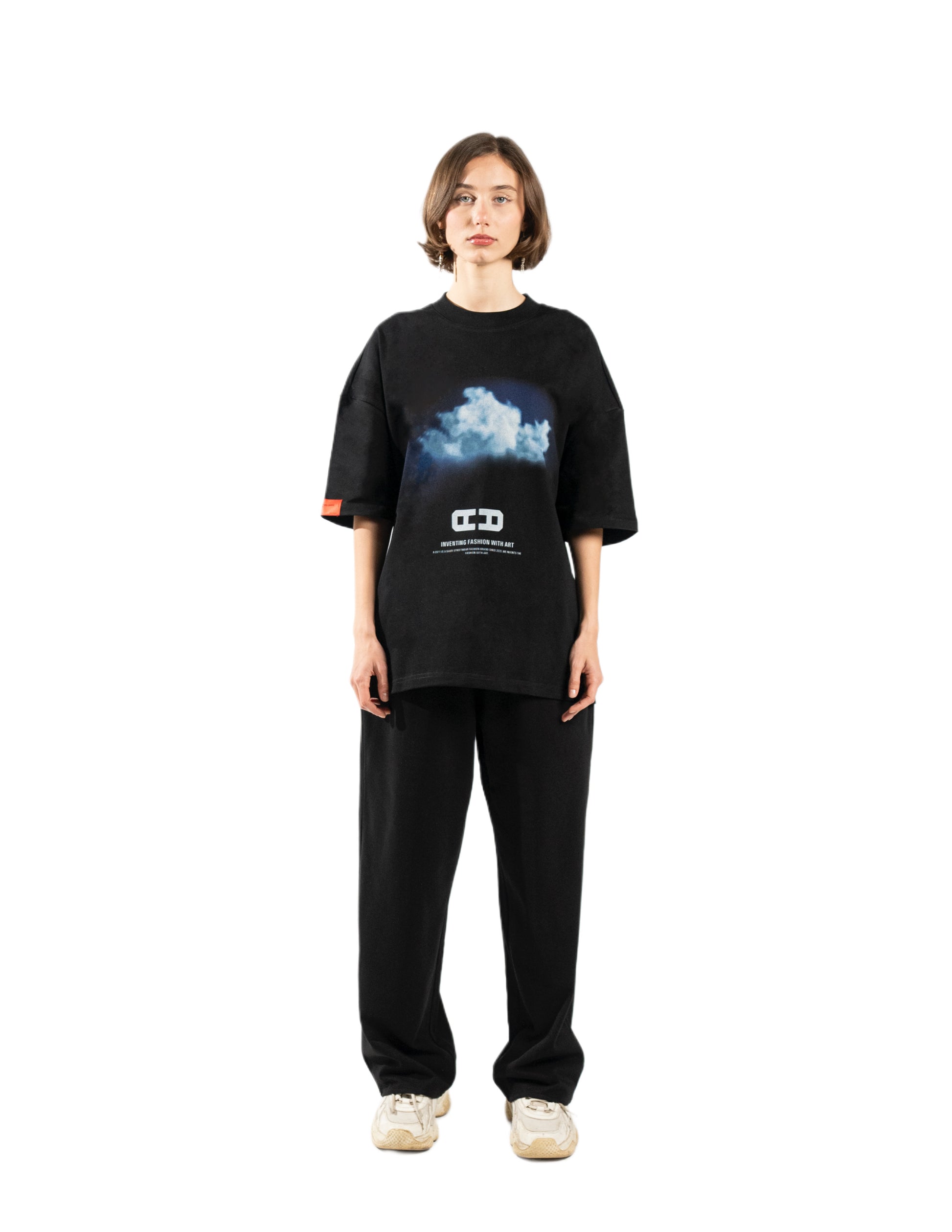 SUMMER - SPRING 2025 - A-9911 CLOUDS - BLACK OVERSIZED T-SHIRT